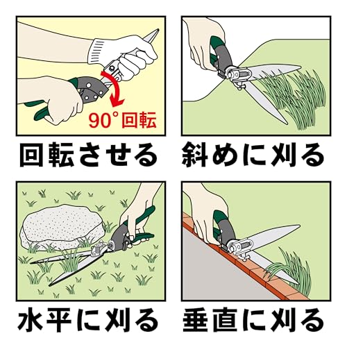 - 長く伸びた芝生も簡単に刈り取りできる。
