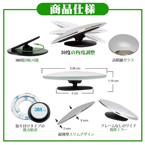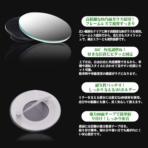 どの位置に広角補助ミラーを取り付けるのが自分にとって見やすい位置なのか?を確認してから両面テープで本固定する事をお勧めします。